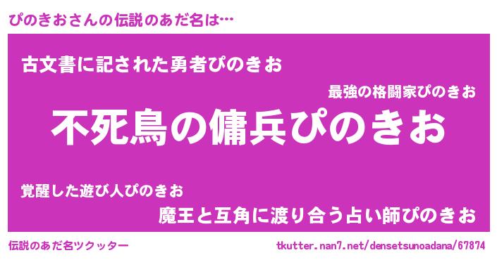 | 意味不明あだ名 | 『ペロリンぴのきお』『永久保存ぴのきお』 |