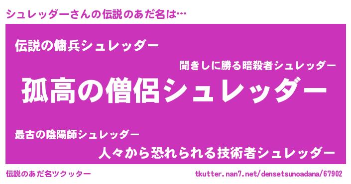 | 萌えアニメ | 主人公(シュレッダー)のあだ名『 シュっち』 |