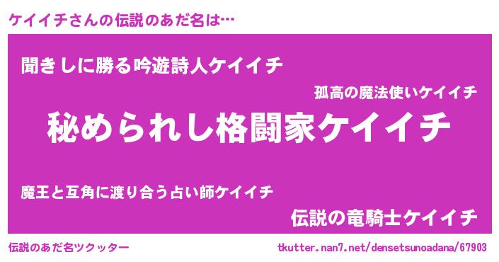 | 意味不明あだ名 | 『住所不定無職ケイイチ(3歳)』 |