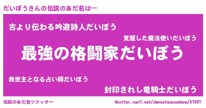 | 意味不明あだ名 | 『だいぼうフォーエバー』 |