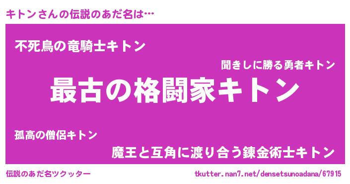 | ヒーロー風カッコイイあだ名 | 『ウルトラキトンマン』『スーパーキトン』 |