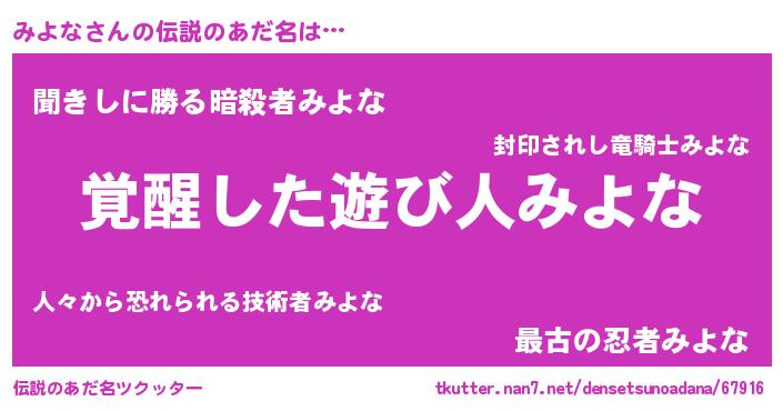 | ファンタジー風あだ名 | 『ファントムミヨス』『ヴァルミヨーナ』 |