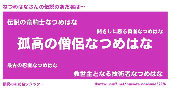 | ヒーロー風カッコイイあだ名 | 『暗黒騎士ナツ』『スーパーナツメハナ』 |