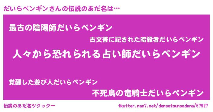 | ヒーロー風カッコイイあだ名 | 『正義の使者だいらペンギン』 |