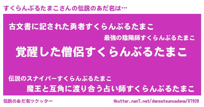 | 意味不明あだ名 | 『とにかく怪しいすくらんぶるたまこ』 |