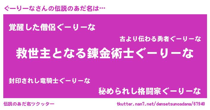 | 男性向けラノベタイトル風あだ名 | 『ノーゲーム・ノーグーリーナ』 |