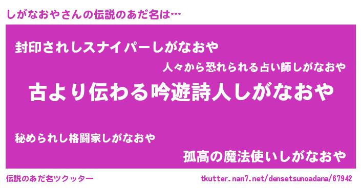 | 意味不明あだ名 | 『永久保存しがなおや』『自称しがなおや』 |