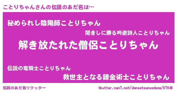 | ヒーロー風カッコイイあだ名 | 『幻影騎士コト』『仮面コトダー』 |