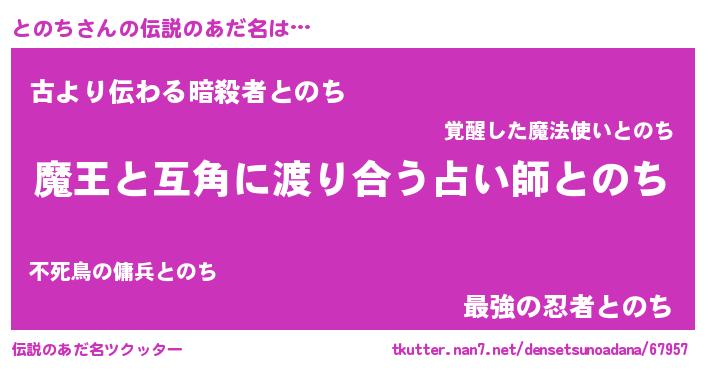 | 意味不明あだ名 | 『住所不定無職とのち(39歳)』 |