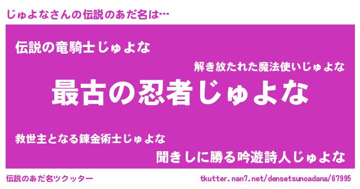 | 女子向けラノベタイトル風あだ名 | 『じゅよな伯爵の花嫁』 |