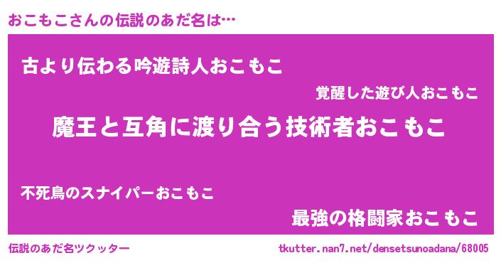 | ヒーロー風カッコイイあだ名 | 『愛の使者おこもこ』『ネオオコモコ』 |
