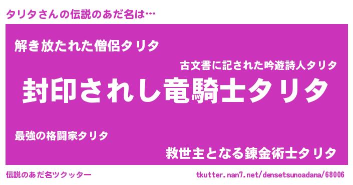 | ヒーロー風カッコイイあだ名 | 『究極戦士タリタ』『スーパータリタ』 |