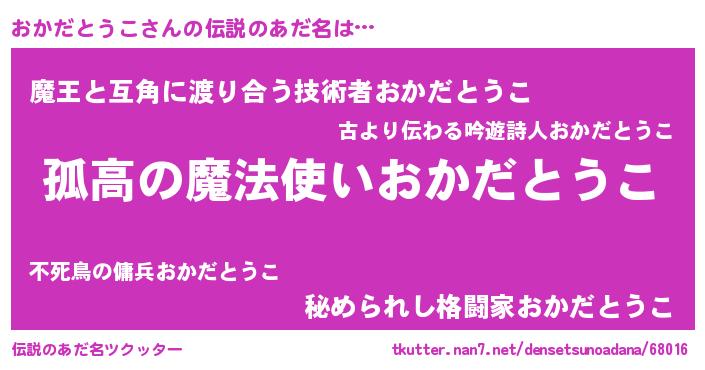 | 女子向けラノベタイトル風あだ名 | 『シンデレラおかだとうこ家の靴箱館』 |
