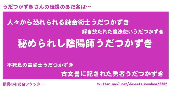 | 男性向けラノベタイトル風あだ名 | 『緋弾のウダツカズキ』 |
