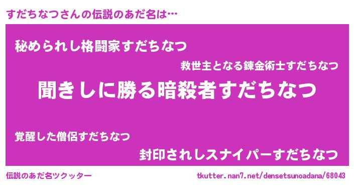 | 意味不明あだ名 | 『住所不定無職すだちなつ(40歳)』 |