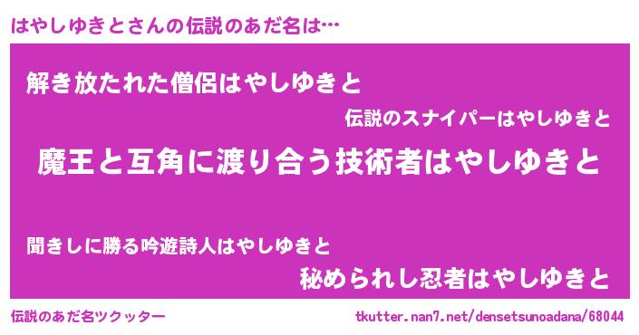 | 男性向けラノベタイトル風あだ名 | 『ノーゲーム・ノーハヤシユキト』 |