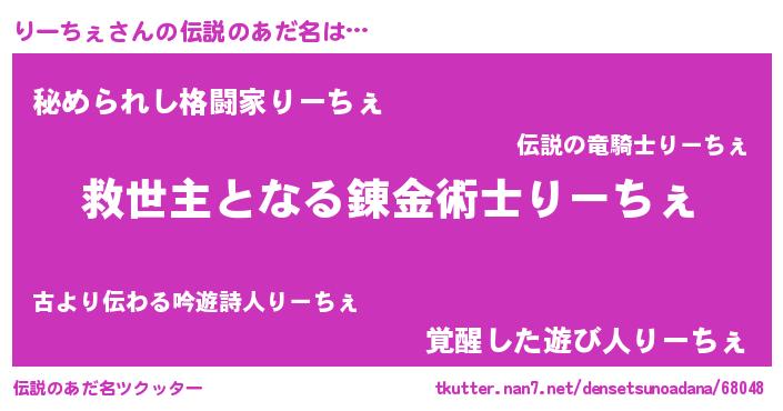 | ヒーロー風カッコイイあだ名 | 『天空の使者りーちぇ』『幻影騎士リー』 |