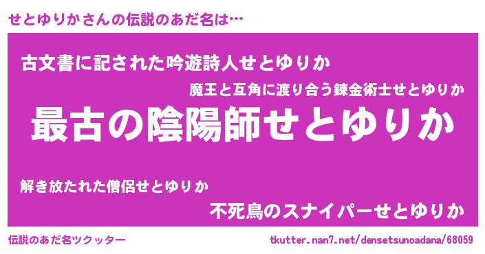 | 意味不明あだ名 | 『住所不定無職せとゆりか(98歳)』 |