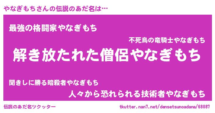 | ポケモン風あだ名 | 『ヒヤナギモチ』『ヤナキング』 |