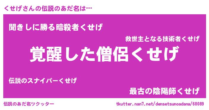 | 意味不明あだ名 | 『とにかく怪しいくせげ』『自称くせげ』 |