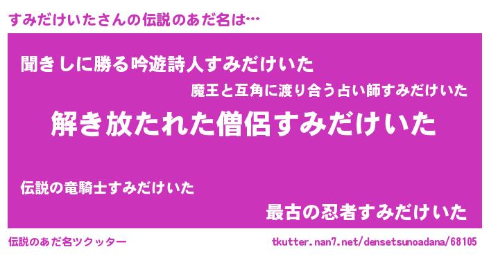 | ヒーロー風カッコイイあだ名 | 『銀牙騎士スミ』『ネオスミダケイタ』 |