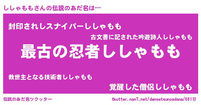 | ヒーロー風カッコイイあだ名 | 『サイバー戦士シシャモモ』 |