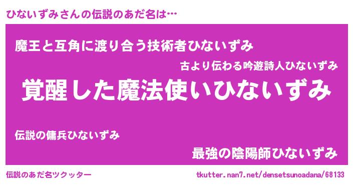 | 意味不明あだ名 | 『とにかく怪しいひないずみ』 |