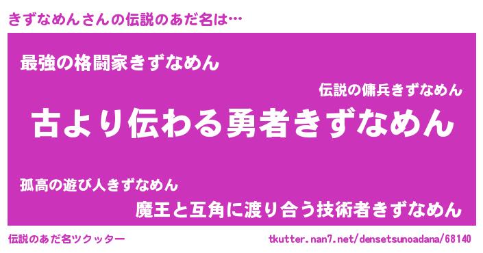 | 男性向けラノベタイトル風あだ名 | 『転生したらきずなめんだった件』 |