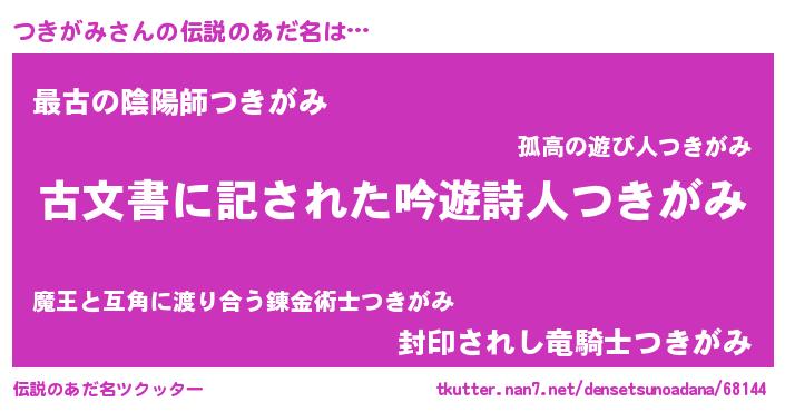 | 男性向けラノベタイトル風あだ名 | 『誰もが恐れるあのつきがみが、ぼくの専属メイドになるようです。』 |