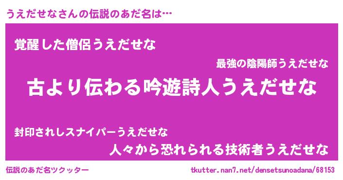 | ファンタジー風あだ名 | 『ウエディッシュ』『ファントムウエス』 |