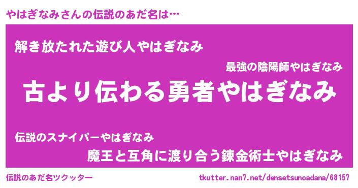| 意味不明あだ名 | 『永久保存やはぎなみ』『自称やはぎなみ』 |