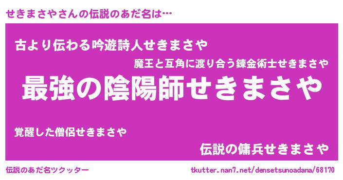 | ヒーロー風カッコイイあだ名 | 『ウルトラせきまさやマン』 |