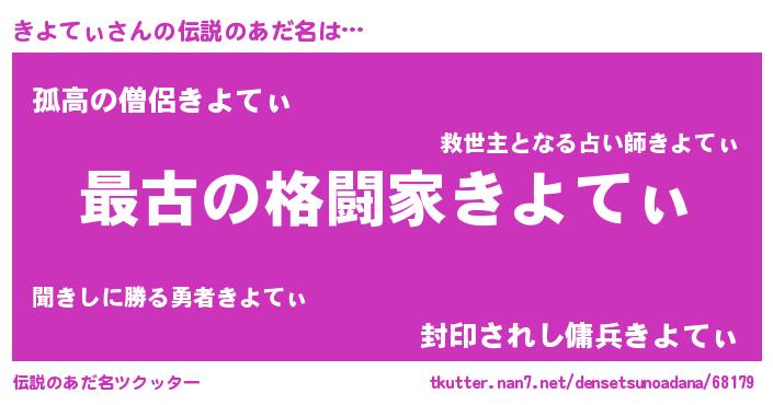 | 欧米人風あだ名 | 『きよてぃクリステル』 |