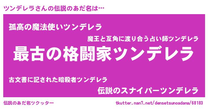 | 女子向けラノベタイトル風あだ名 | 『乙女ゲームの破滅フラグしかない悪役ツンデレラに転生してしまった…』 |
