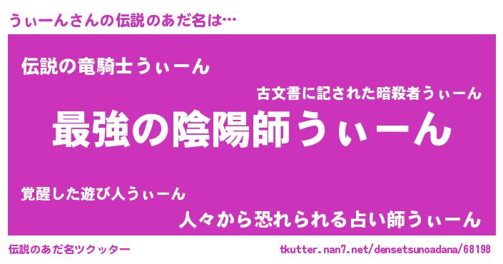 | 男性向けラノベタイトル風あだ名 | 『うぃーんに滅ぼされるだけの簡単なお仕事です』 |