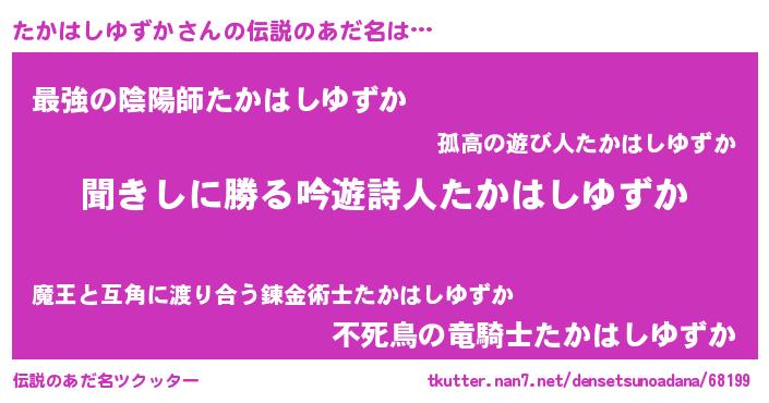 | ヒーロー風カッコイイあだ名 | 『仮面タカダー』『ネオタカハシユズカ』 |