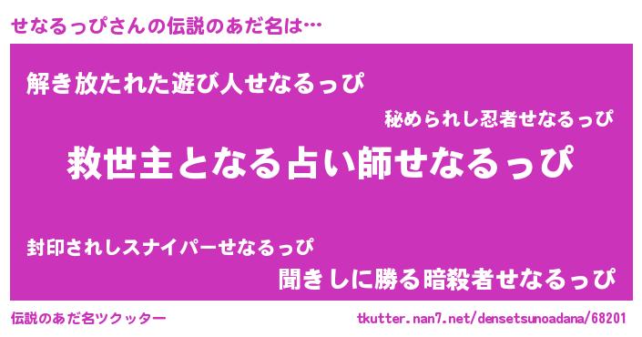 | ヒーロー風カッコイイあだ名 | 『天空の使者せなるっぴ』『暗黒騎士セナ』 |