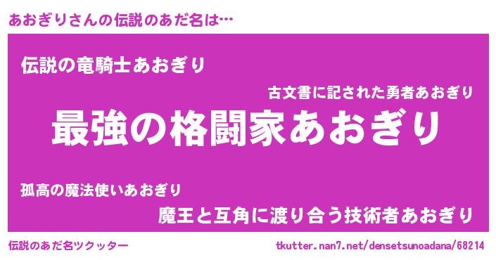 | ヒーロー風カッコイイあだ名 | 『ウルトラあおぎりマン』『ネオアオギリ』 |