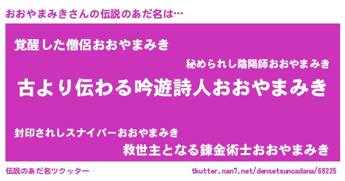 | 意味不明あだ名 | 『永久保存おおやまみき』 |