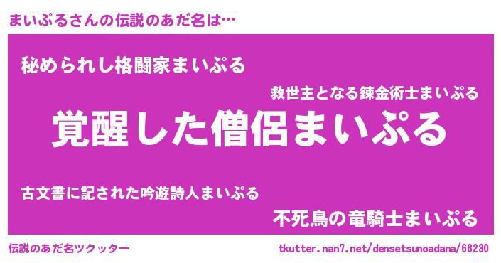 | 意味不明あだ名 | 『とにかく怪しいまいぷる』 |
