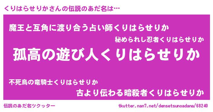 | ヘコむあだ名 | 『くりっちょ』『くりはらせりか(小並感)』 |