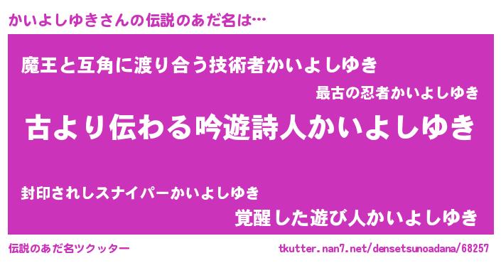 | ヘコむあだ名 | 『かいよしゆき(笑)』『かい太郎』 |