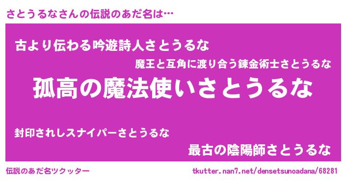 | ヒーロー風カッコイイあだ名 | 『超時空戦士サトウルナ』『魔戒騎士サト』 |