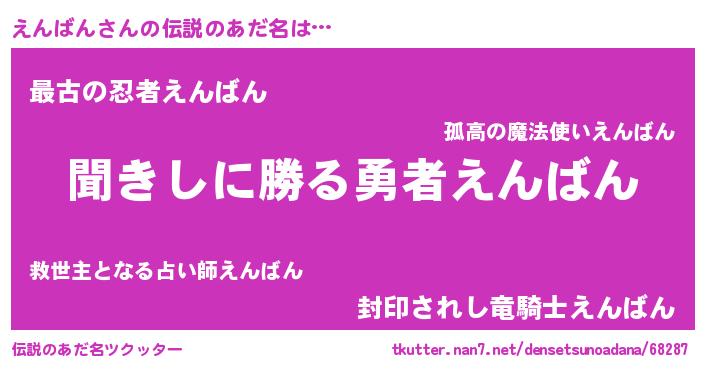 | ヒーロー風カッコイイあだ名 | 『ネオエンバン』『ウルトラえんばんマン』 |
