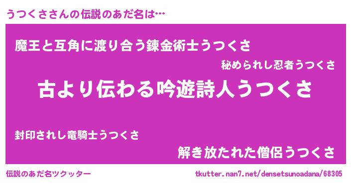 | ヒーロー風カッコイイあだ名 | 『最強戦士ウツクサ』『ネオウツクサ』 |