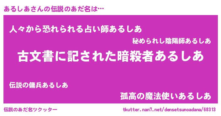 | 意味不明あだ名 | 『自称あるしあ』『永久保存あるしあ』 |