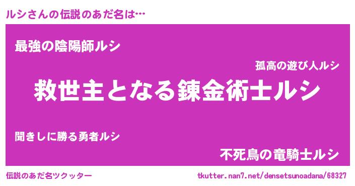 | 男性向けラノベタイトル風あだ名 | 『ルシに滅ぼされるだけの簡単なお仕事です』 |