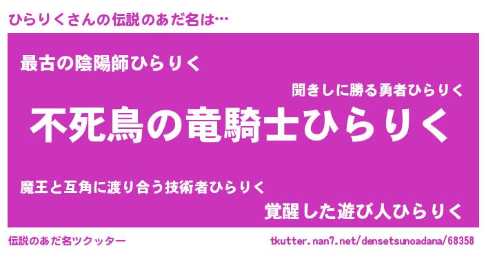 | 意味不明あだ名 | 『もやし科ひらりく属』『自称ひらりく』 |