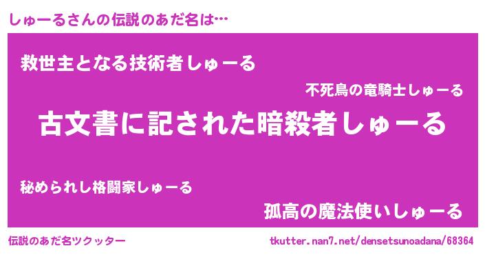 | 意味不明あだ名 | 『永久保存しゅーる』『自称しゅーる』 |