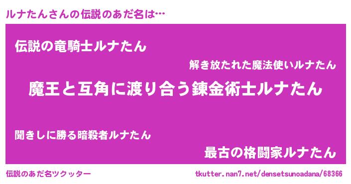 | 女子向けラノベタイトル風あだ名 | 『ルナたん恋絵巻』 |